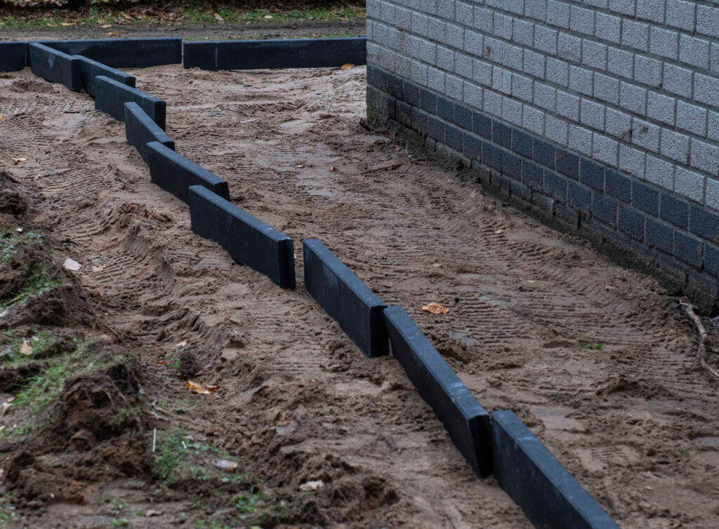 Bij RCN de Jagerstee zijn we deze periode bezig met het straatwerk rondom enkele te renoveren boshuisjes. Er komen prachtige terrassen, bestaand uit antracieten tegels en betonbanden.